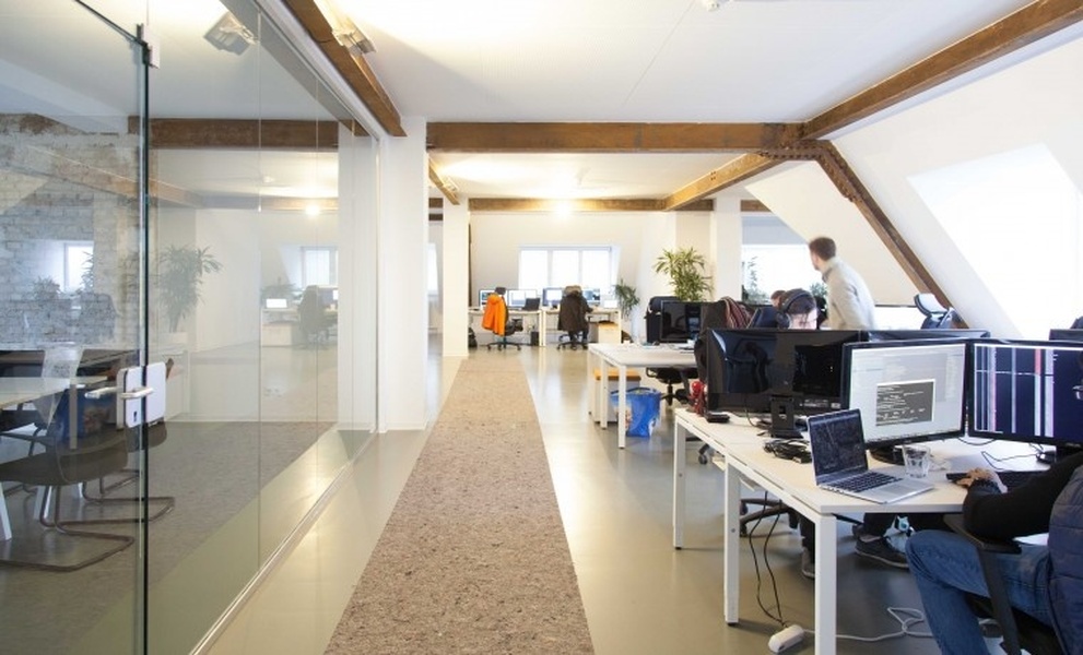 - Ein Büro mit mehr als 700 qm Platz und hohen Decken.
